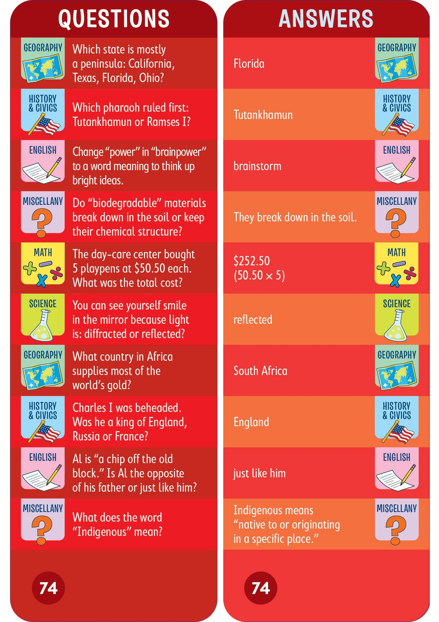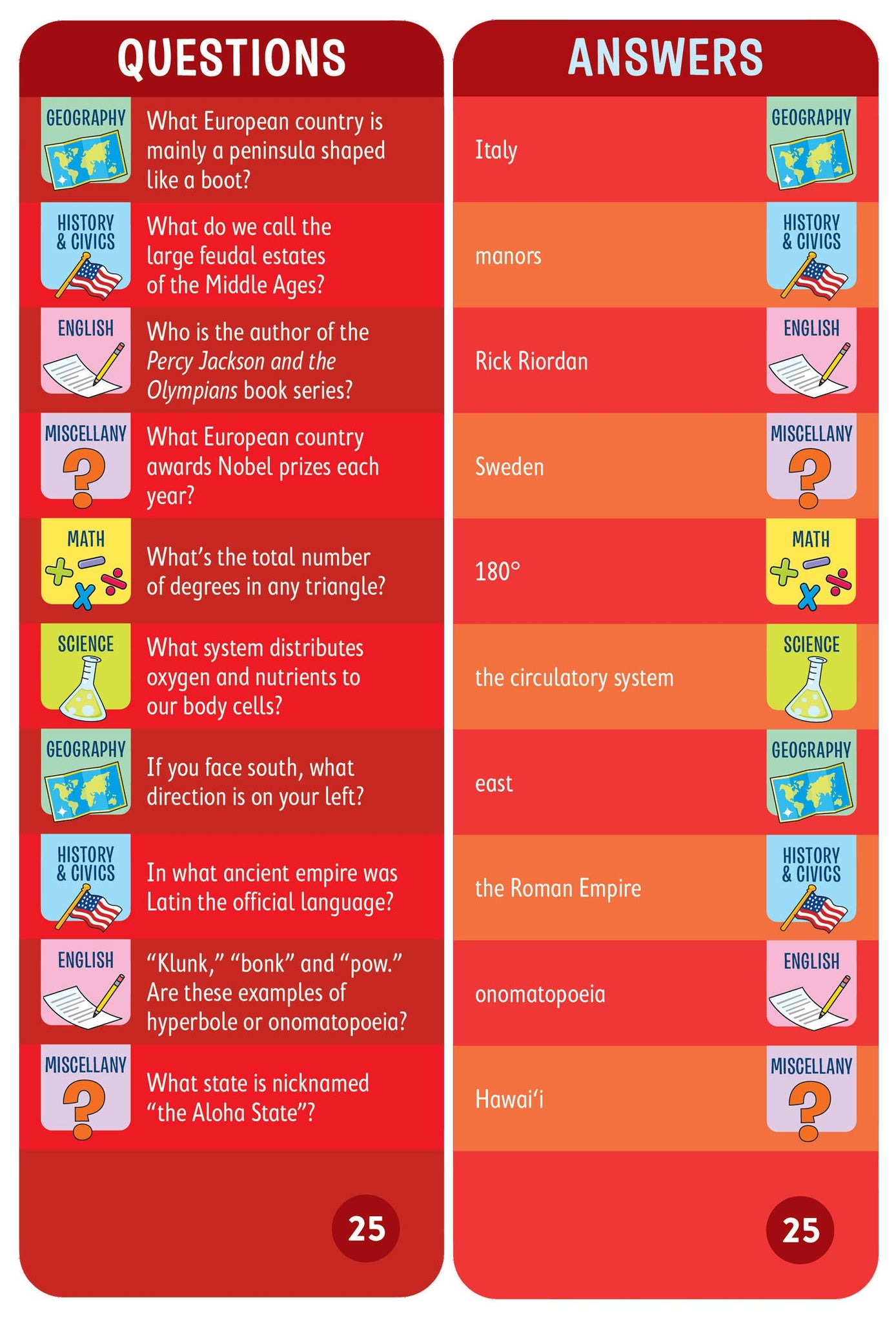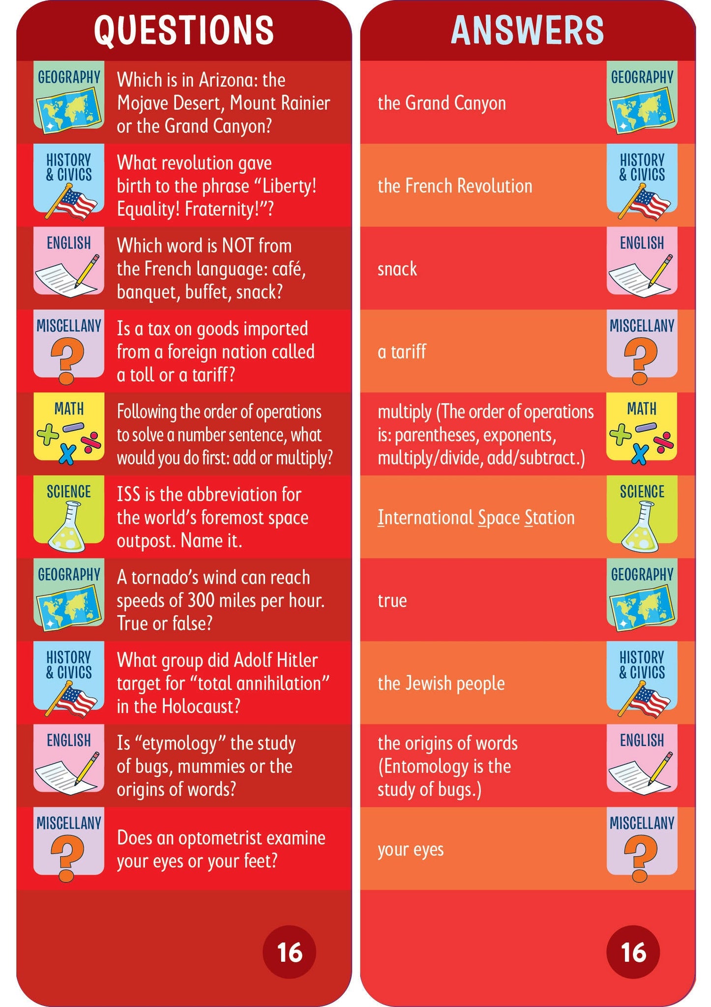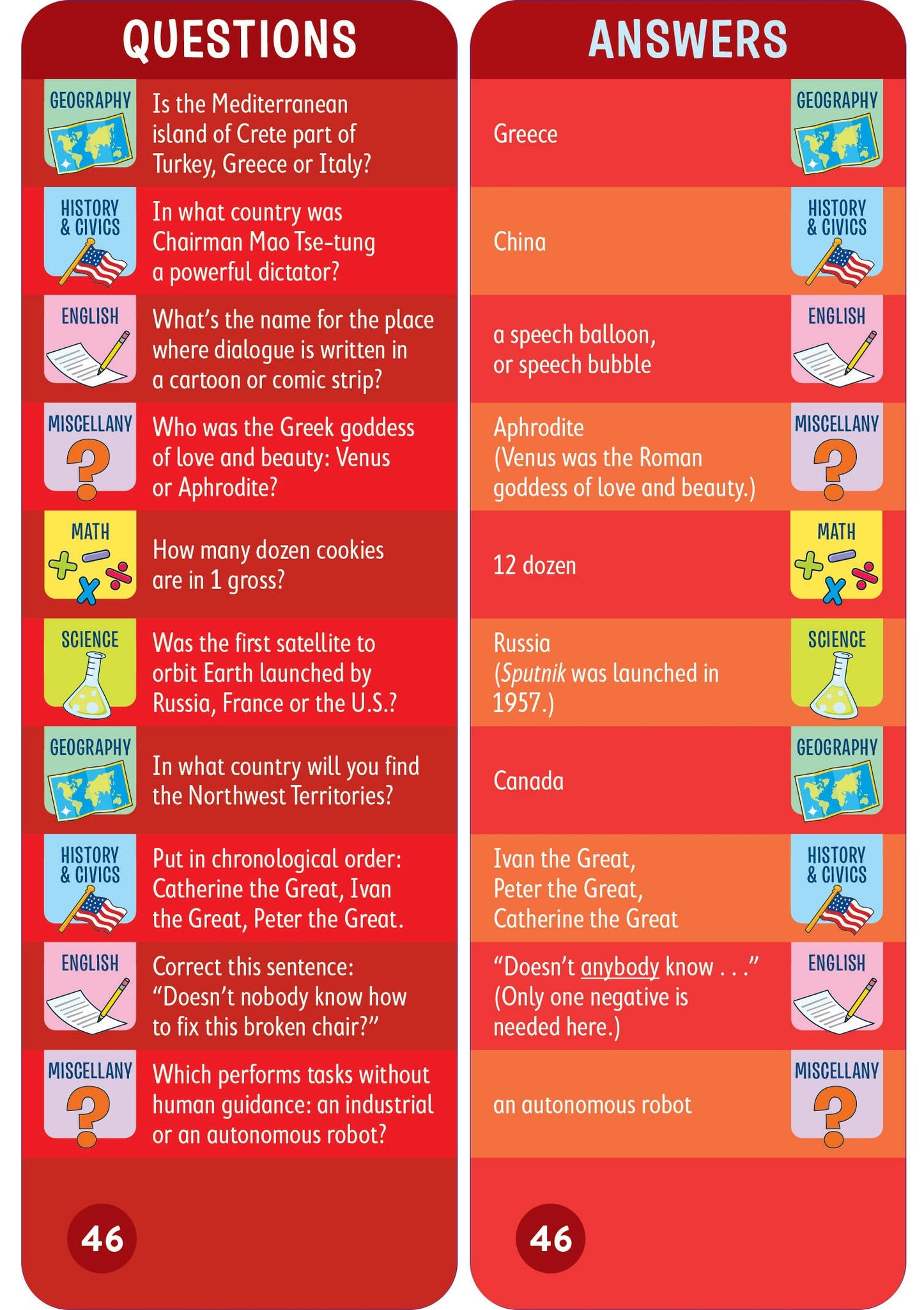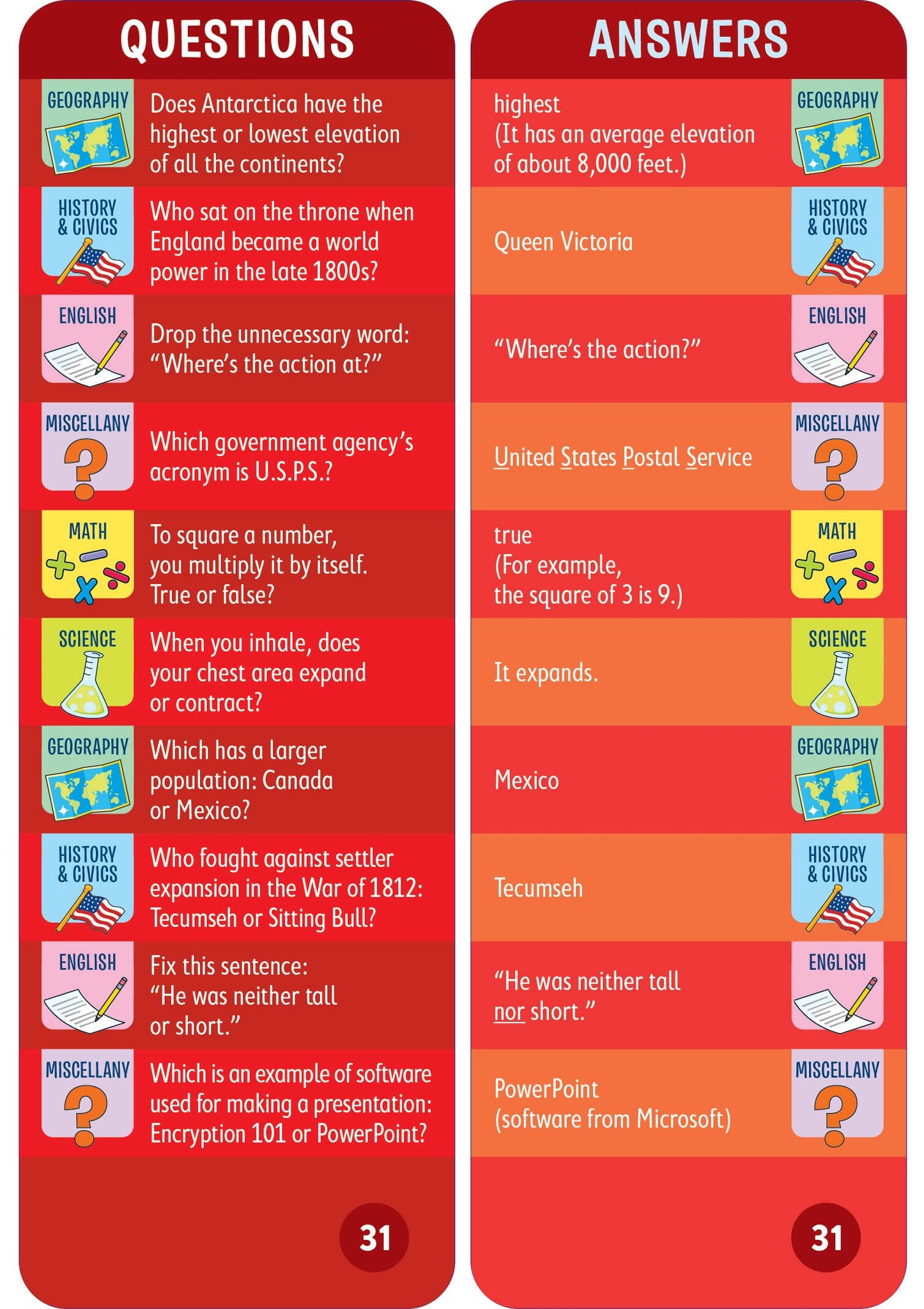 - 1,500 questions and answers covering math, science, English, history, geography, and more