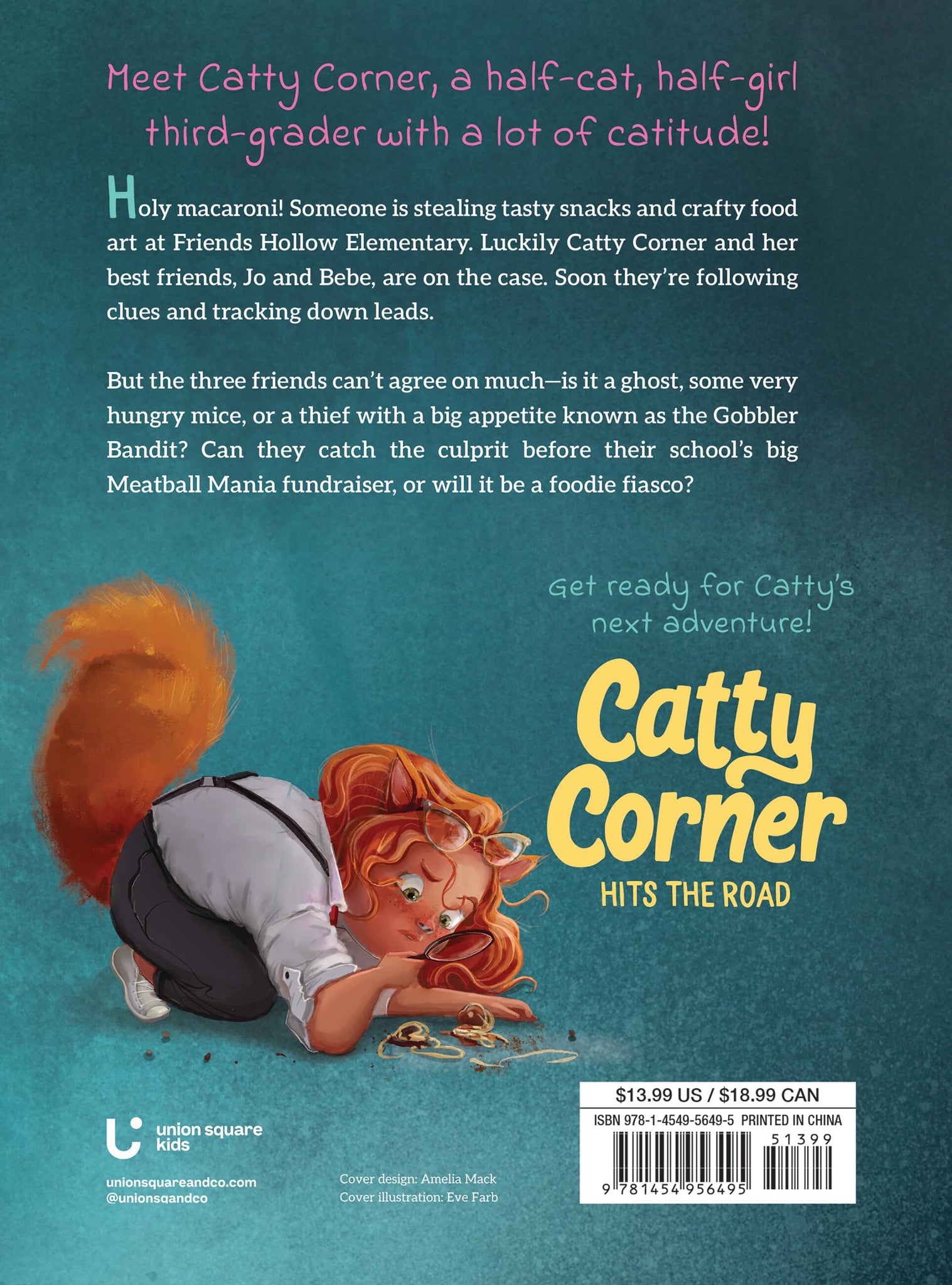 Holy macaroni! Someone is stealing tasty snacks and crafty food art at Friendswood elementary school. Luckily Catty Corner and her best friends, Jo and Bebe, are on the case. Soon they’re following clues and tracking down leads. But the three friends can’t agree on much—is it a ghost, some very hungry mice, or a sneaky thief with a big appetite known as the Gobbler Bandit? Can they catch the culprit before their school’s big Meatball Mania fundraiser, or will it be a foodie fiasco?