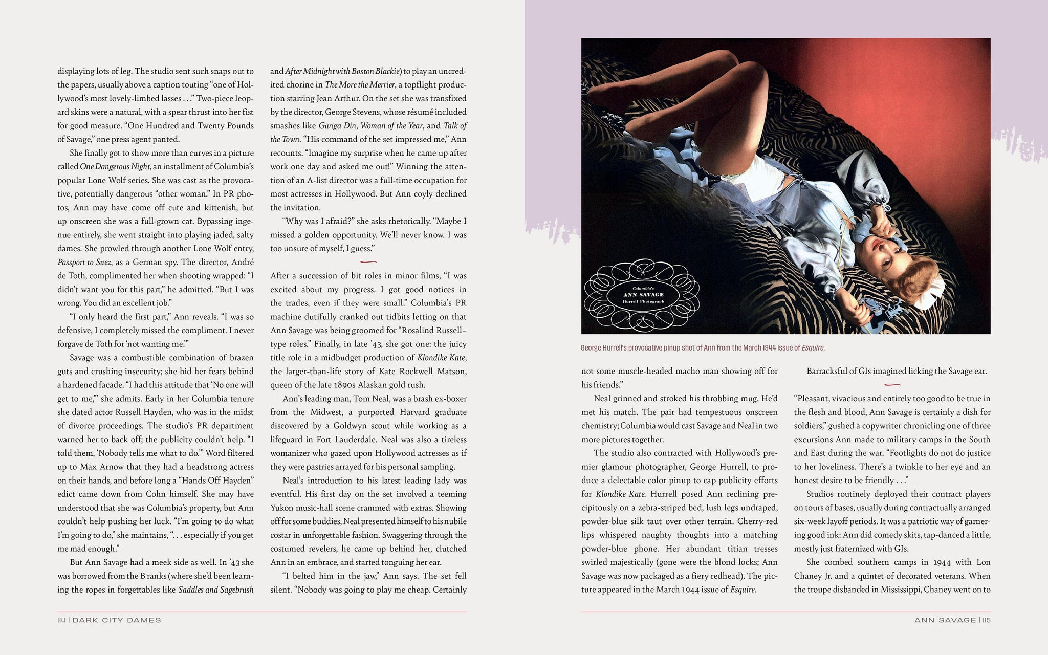 The book provides in-depth profiles of these formidable women during the height of their careers, circa 1950, as they balanced love and career, struggled against typecasting, and sought fulfillment in a ruthless business. Their personal stories—teeming with larger-than-life characters like Howard Hughes, Louis B. Mayer, Robert Mitchum, Otto Preminger, and John Huston—offer a fascinating counterpoint to their movies. Then Dark City Dames revisits each woman fifty years later, to witness their hard-won—and triumphant—survival. On every page their own voices ring through, reflecting on their lives with as much passion, pain, intelligence, energy, and humor as any movie script.