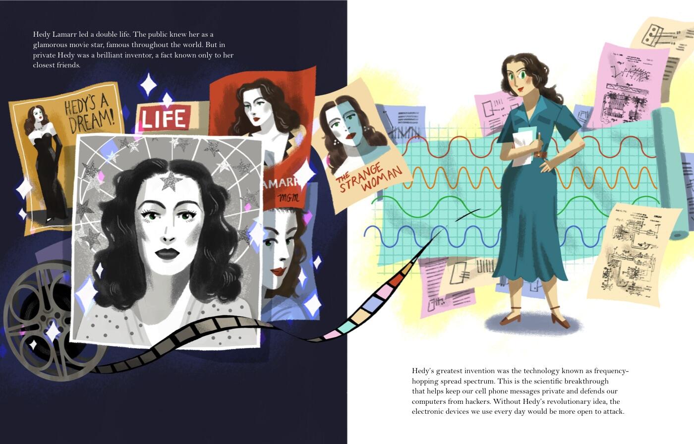 To her adoring public, Hedy Lamarr was a glamorous movie star, widely considered the most beautiful woman in the world. But in private, she was something more: a brilliant inventor. And for many years only her closest friends knew her secret. Now Laurie Wallmark and Katy Wu, who collaborated on Sterling’s critically acclaimed picture-book biography Grace Hopper: Queen of Computer Code, tell the inspiring story of how, during World War Two, Lamarr developed a groundbreaking communications system that still remains essential to the security of today’s technology.