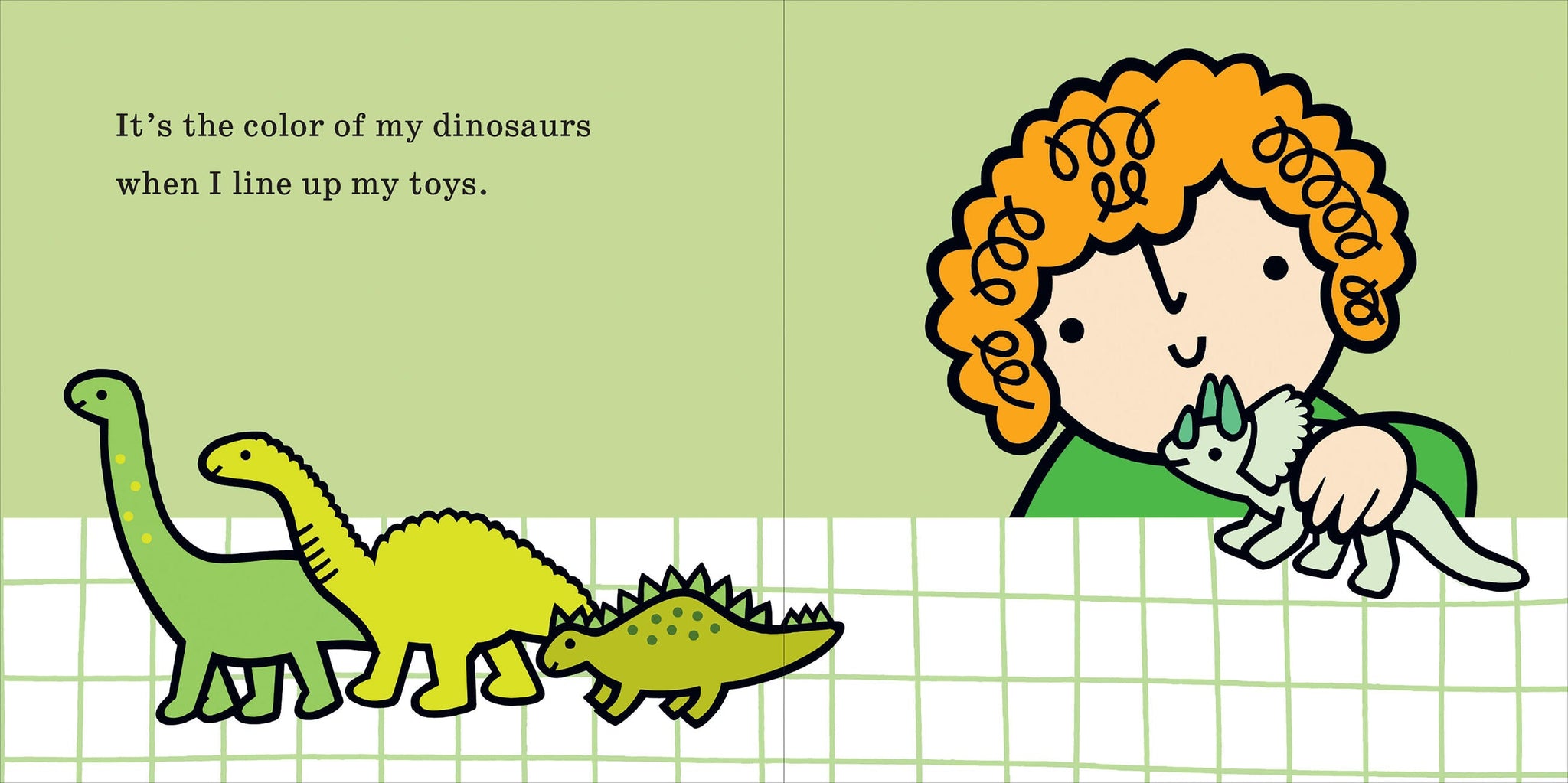 A celebration of the color green—from dinosuars and bicycles to geckos and avocados.