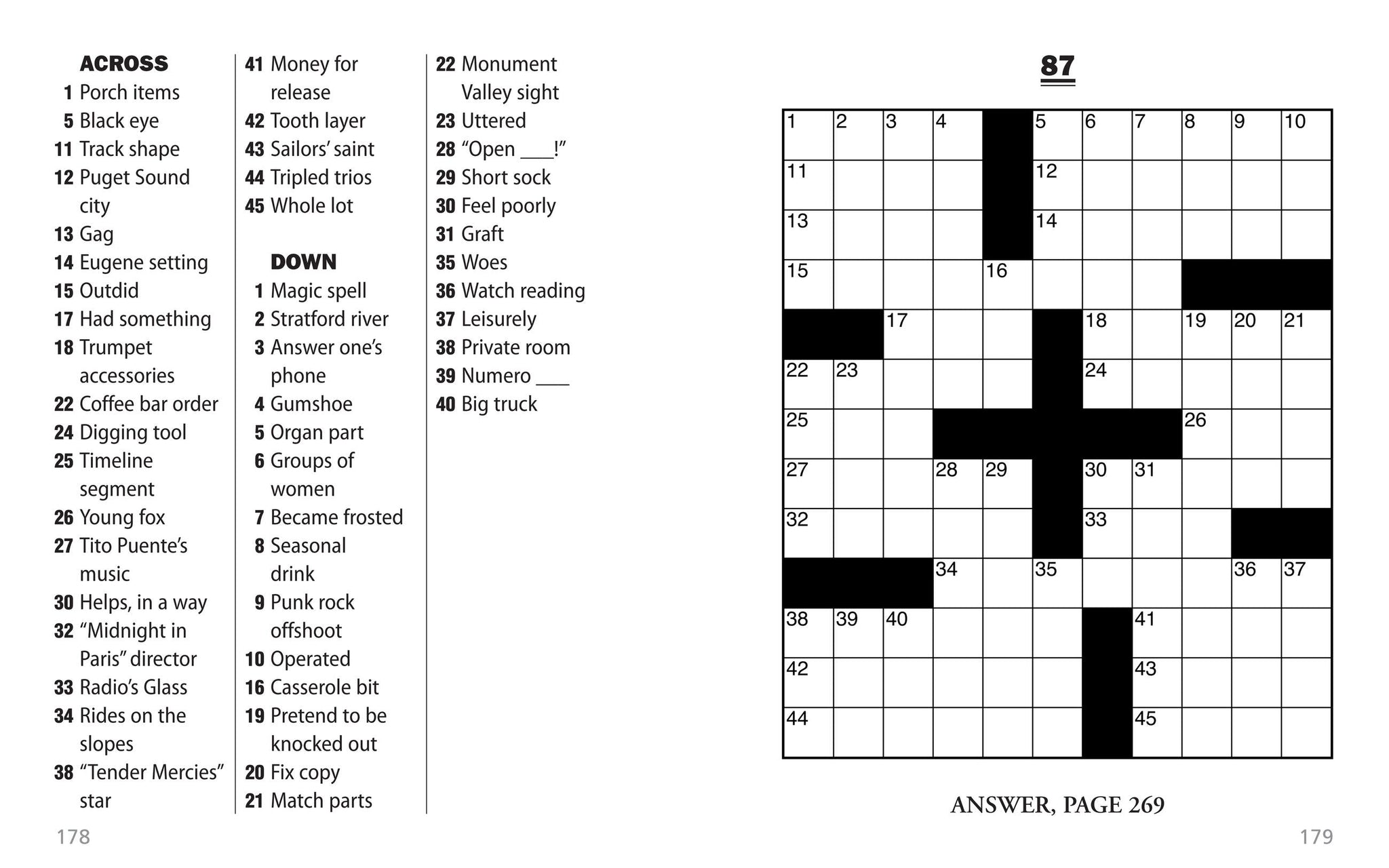 These large-print, generously sized crosswords are simple to solve and easy to see. Each puzzle takes up two pages, so there’s no need to strain while reading the clues and numbers in the boxes. With its entertaining subjects and easy to medium clues, Jumbo Print Easy Crosswords #5 will gratify you in the most delightful way. As a bonus feature, the spiral binding in the Large Print Crosswords series from beloved puzzle book imprint Puzzlewright Press allows the books to lie flat, making them easier to solve.