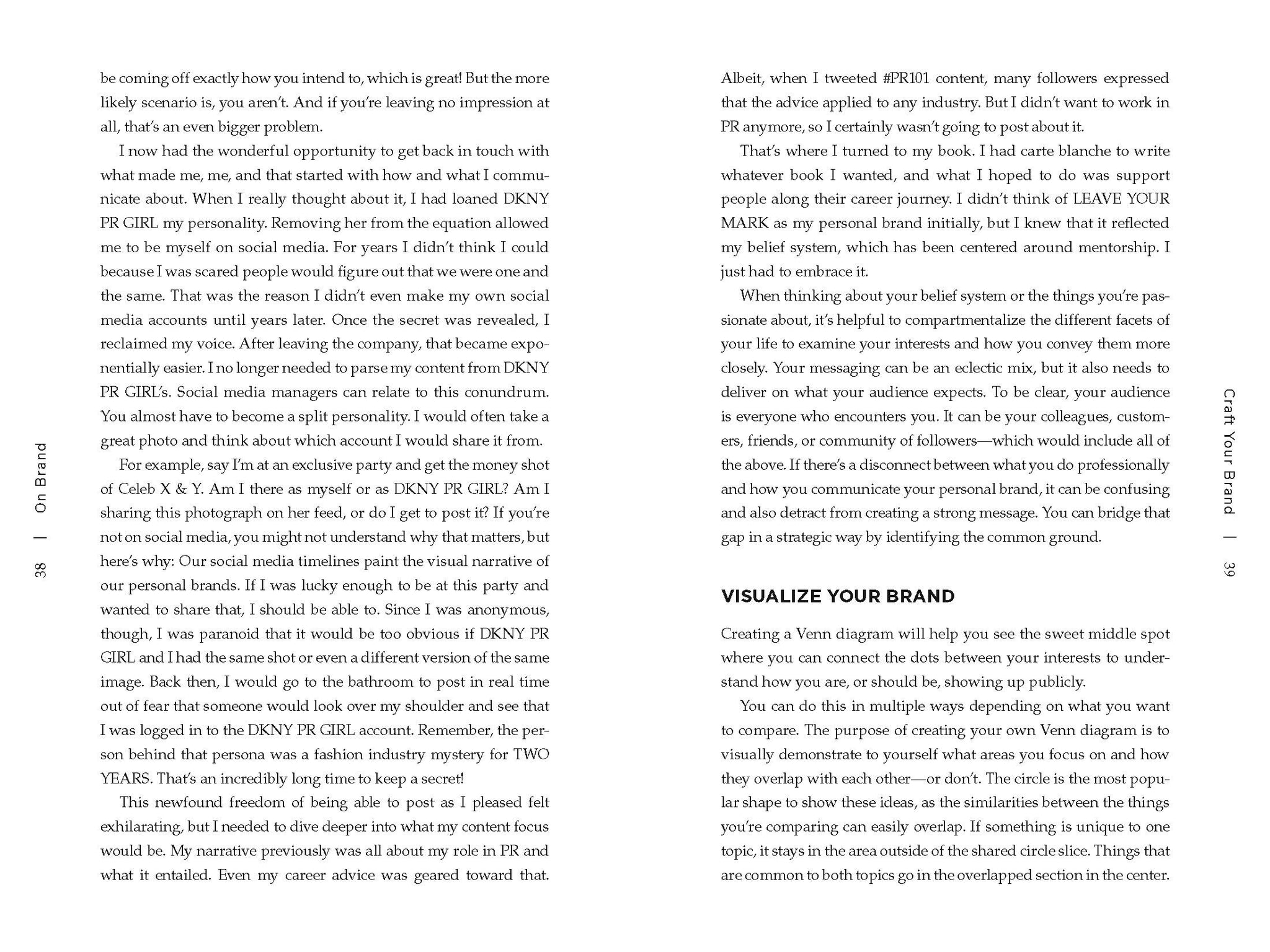 When you give meaning to your own name, it secures your professional longevity. If you don’t do the work to communicate your value, other people will happily make up their own version of your story—or worse, forget about you. When your personal brand is strong, your name is dropped in rooms you’re not in and opportunities open up to you first. In a world where we communicate nonstop, learning how to market yourself—and articulating the message you want to send— are paramount to success.