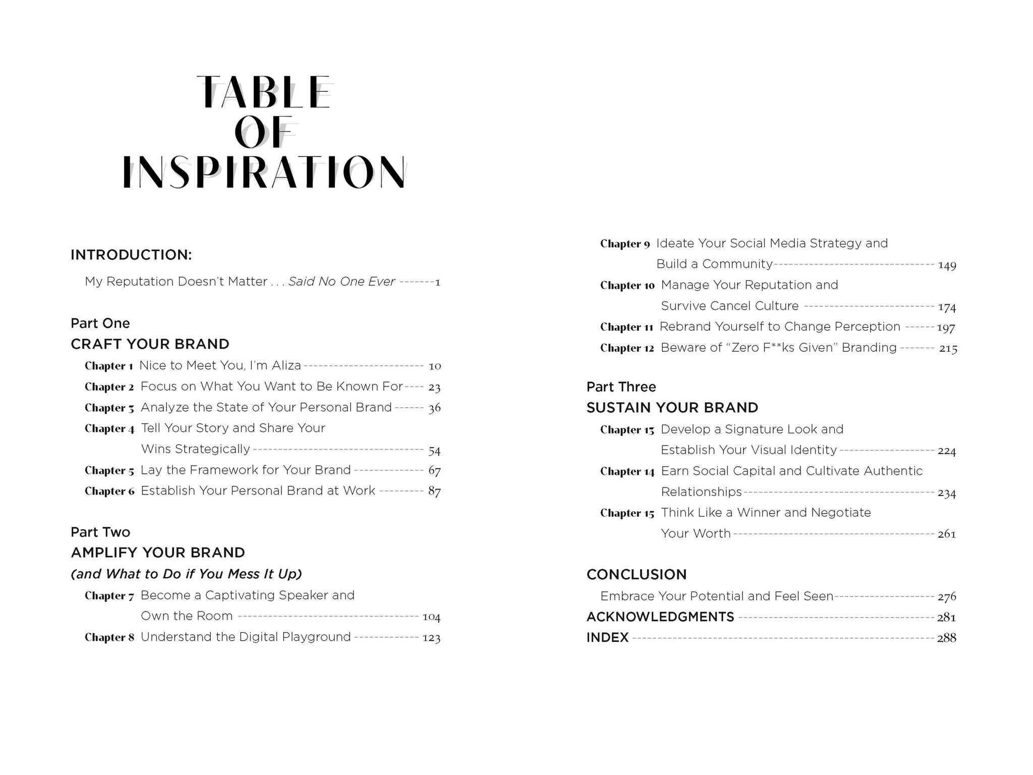 Aliza Licht, a former fashion executive who parlayed her communications expertise into a multimedia consultancy, shares insider tips from her experiences and advice from renowned contributors to give you a step-by-step game plan for building a brand: the brand of you. This book is for the recent graduate seeking their first job, the middle manager looking to level up, the executive who wants to be considered a thought leader, the entrepreneur building from scratch, the person who wants to pivot to a new career, the influencer who is their own brand. . . it’s for anyone looking to make a name for themself and feel proud when they hear the words “that’s so on brand for you.”