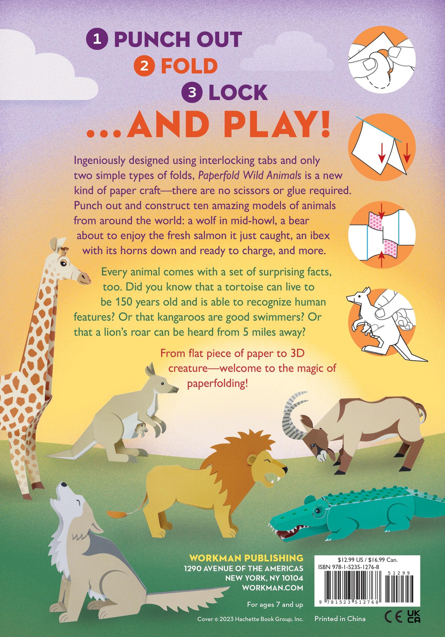 Ingeniously designed using interlocking tabs and only two simple types of folds, Paperfold Wild Animals is a new kind of paper craft that’s fun and mess-free for kids 7+. Punch out and construct ten amazing models of animals from around the world: a wolf in mid-howl, a bear about to enjoy the fresh salmon it just caught, an ibex with its horns down and ready to charge, and more.