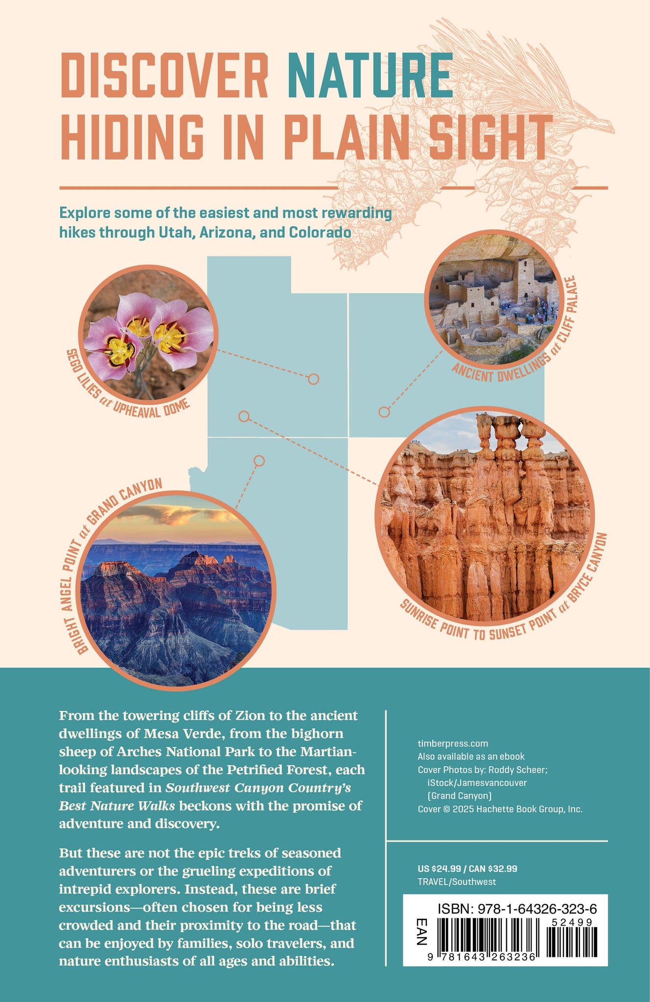 From the towering cliffs of Zion to the ancient dwellings of Mesa Verde; from the bighorn sheep of Arches National Park to the Martian-looking landscapes of the Petrified Forest—each trail featured in Southwest Canyon Country's Best Nature Walks beckons with the promise of adventure and discovery.