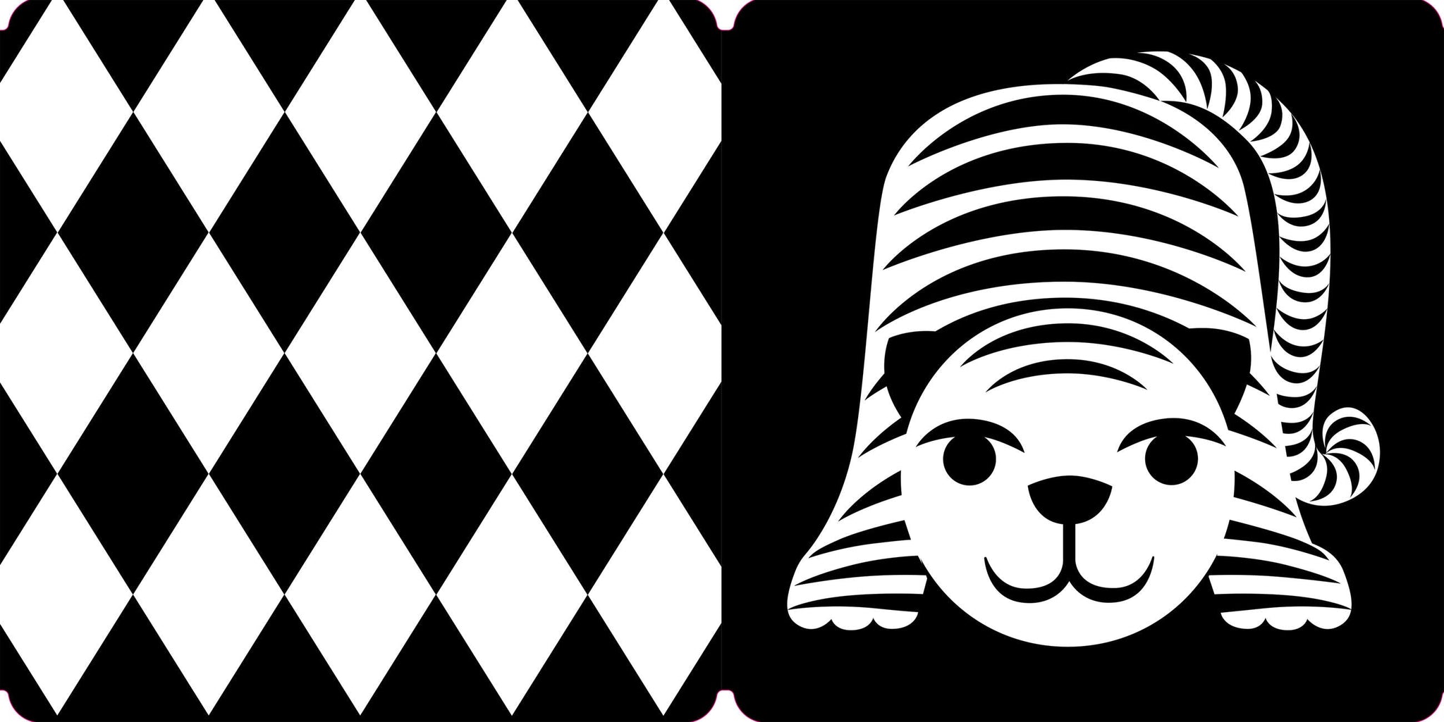 Fold-out board concertina books, based on proven scientific research about how babies see. Did you know babies’ eyes can see high-contrast black-and-white from birth—and black, white, and primary colors from three months. Five spreads of exciting patterns and cute animals.