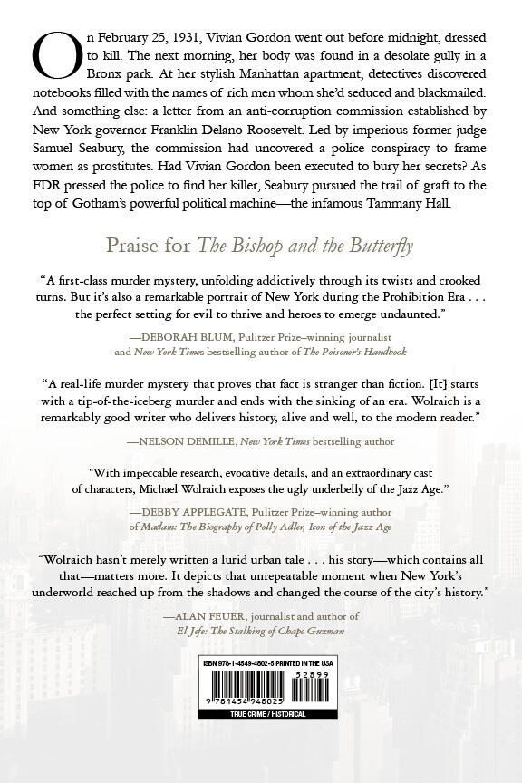 “The 1931 murder of 'Broadway Butterfly' Vivian Gordon exposed an explosive story of graft, corruption and entrapment that went all the way to the top of the state. Wolraich brings a journalist’s eye and a novelist’s elegance to this story of Jazz Age New York.”—New York Times