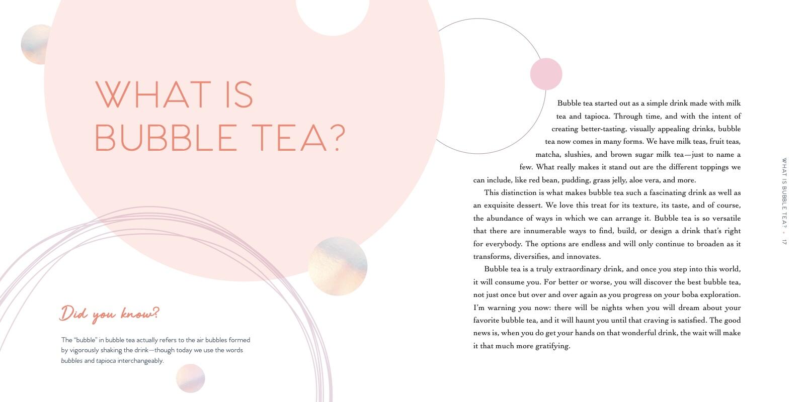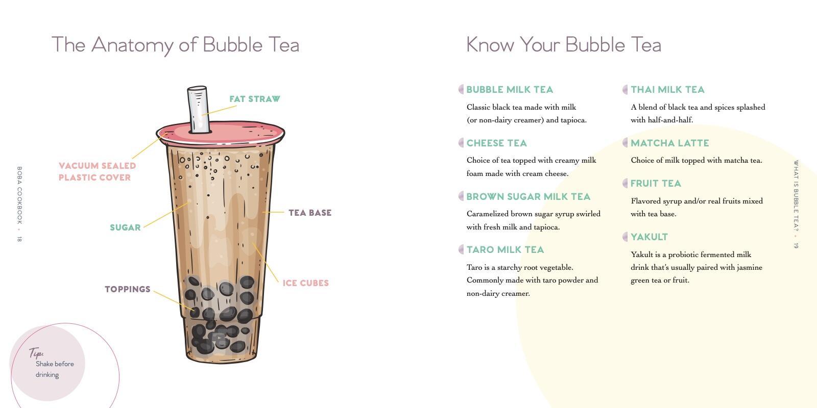 From its origins in Taiwan, bubble tea, or boba, has developed legions of ardent fans across the globe. Often topped with chewy balls of tapioca or other toppings, this sweet treat is colorful, fun, and personalized. Now, with this boba book, bubble tea lovers can make it themselves using all-natural ingredients! Wendy Leung describes how she began her own bubble teashop, Hello Always Tea, and shares 35 favorite recipes—from the homemade tapioca balls she sells, to familiar blended teas (milk tea, taro, and fruit-based), to adventurous options (brown sugar; trendy milk and cheese foam tea; teas made with plant-based milks; and carbonated variations). She also includes a few snack recipes to round out your boba experience. Illustrated with bright and cheerful photography throughout (including photos from Wendy’s travels in Taiwan), and packed with expertise about boba culture, The Boba Cookbook is a must-have boba recipe book for bubble tea enthusiasts.