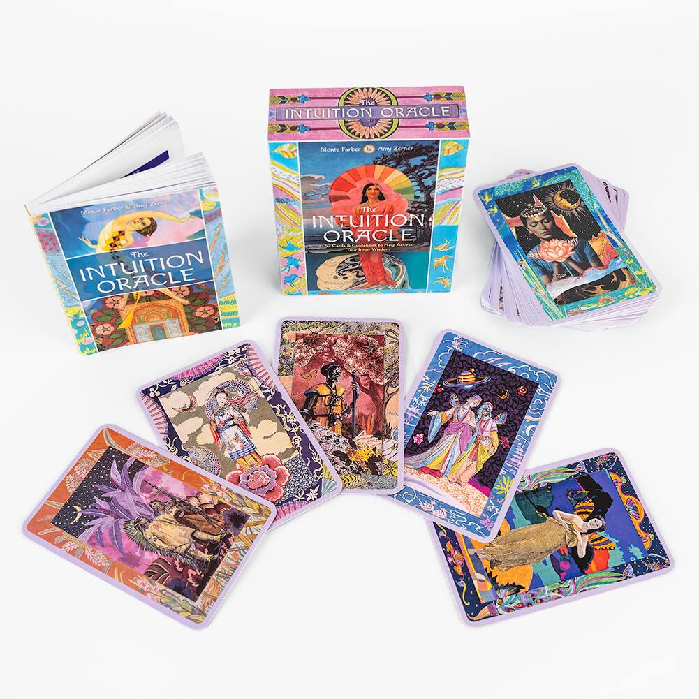 The idea that every human being has an innate ability to make good decisions based on their “gut instinct” is experiencing a surge of popularity in this time of instability and insecurity. This unique oracle deck is an essential tool in developing that inner wisdom. The 52 illustrated oracle cards correspond to archetypes and universal symbols, which are meant to prompt meditative thought. An accompanying guidebook includes a variety of intuition-sharpening exercises to be used with the cards. By incorporating The Intuition Oracle deck into your regular practice, you can acquire a finely tuned sense of what your spirit and your body are telling you to be true. Includes 52 cards and guidebook.