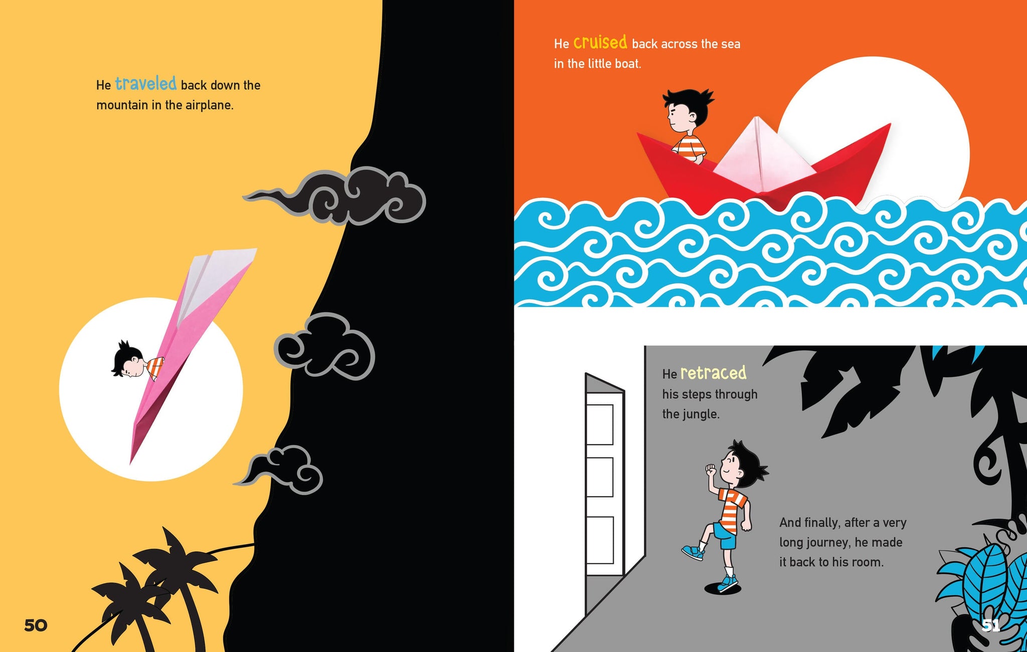 Mike is bored at home on a rainy day. Luckily, he can make his own fun! With nothing but his imagination (and some origami paper), Mike sets out on an epic journey through a jungle, across an ocean, and up the tallest mountain. Along the way, he encounters some new paper friends—Zoe the dog, Monkey, and Bird. Fold origami with Mike on his journey to save his newly folded friends from the monster…and maybe save the monster, too!