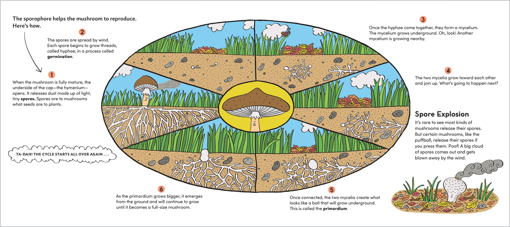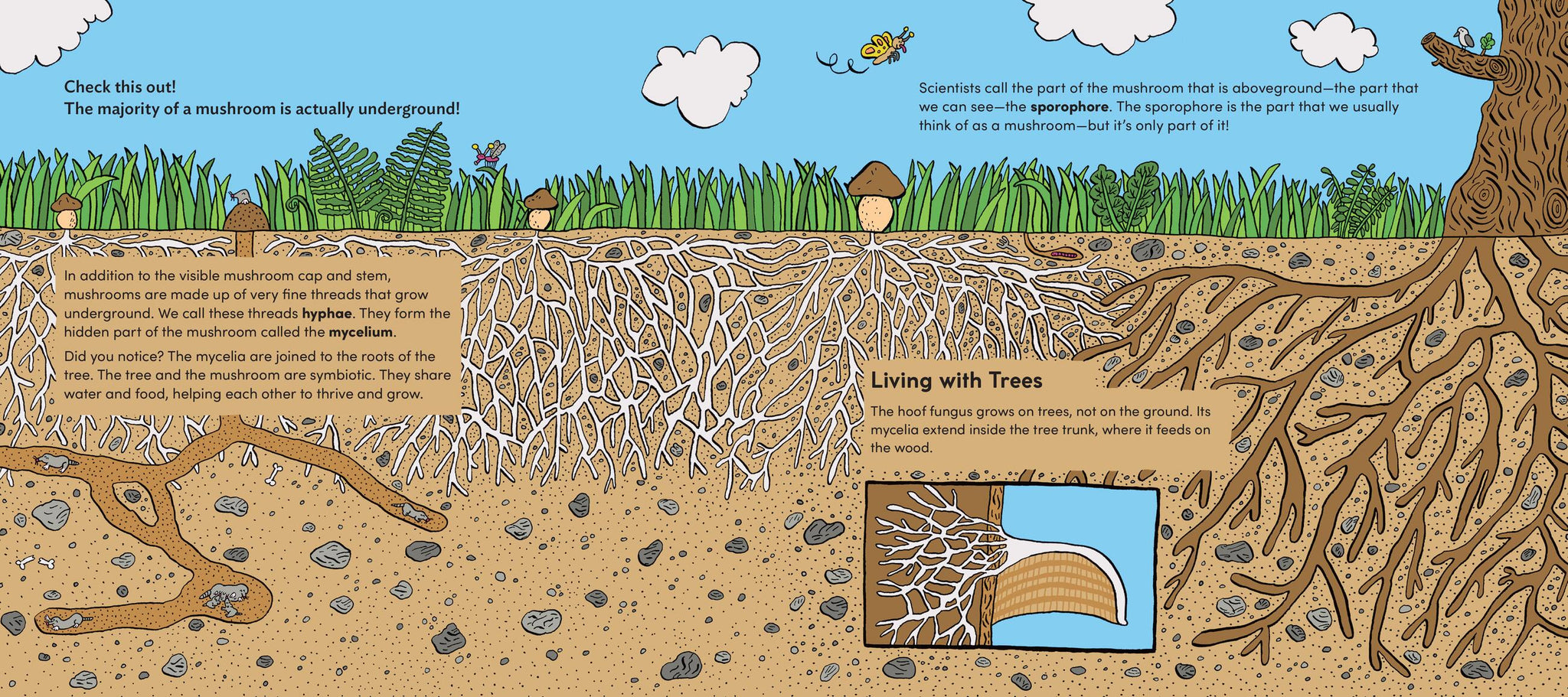 Explore different mushroom habitats and discover how they communicate with other organisms in this charmingly illustrated guide. Featuring profiles of different mushrooms—from chanterelles and oyster mushrooms to stinkhorns, penny buns, amanitas, and more—this engaging science and nature book brings mushrooms to life for readers ages 7 to 11.